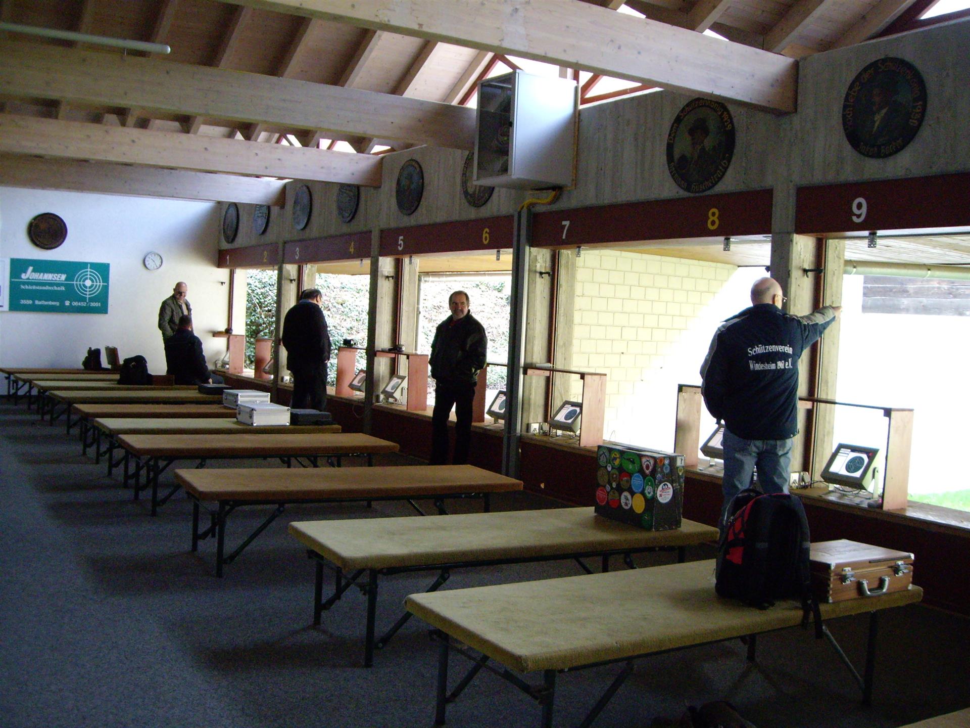 Geschossen wird mit Luftdruckwaffen auf 10 Meter den KK Gewehren und KK Pistolen auf 25 und 50 Metern Bahnen