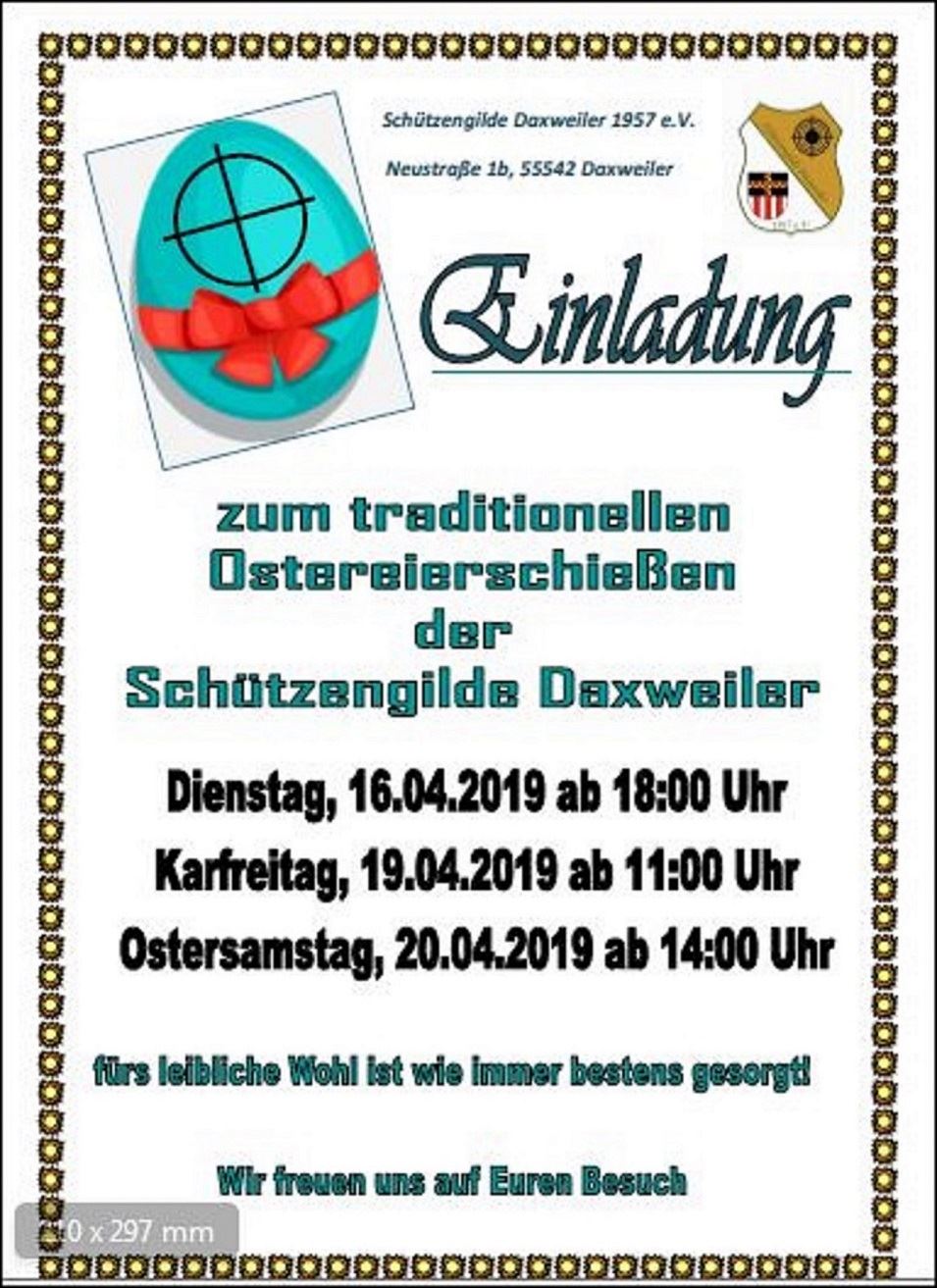 Die Schützengilde besteht eigenständig seit 1958 Sie wurde von einigen Starken Frauen und Männern gegründet. Sportlich-Geschossen wird in Daxweiler schon länger. Früher als Unterabteilung des Sportvereins- da sich dort alles um Fußball drehte